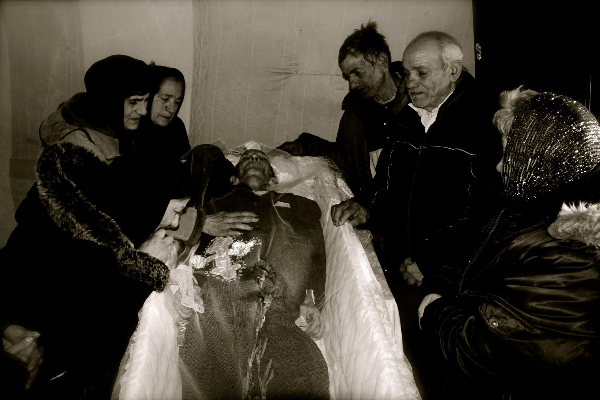 The gypsy funeral in Romania. The visiting of a man in his final days. His earthly body suspended between life and death. His family sharing the same bed to stay warm in the freezing temperatures.